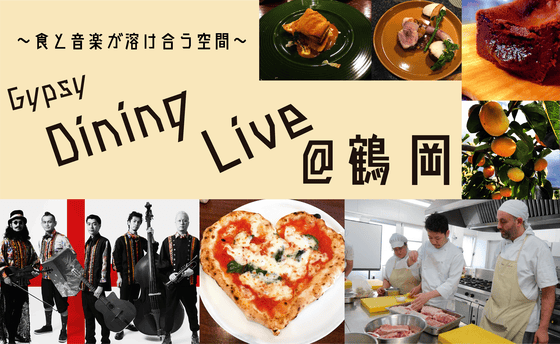 美味しいものいっぱいの鶴岡に【新時代のジプシージャズを創造する】BimBomBam楽団を招き、JAZZの生演奏と鶴岡を代表するシェフたちが振る舞う一流の料理を楽...