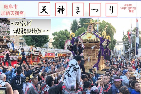 4年ぶりに開催!岐阜市の加納天満宮において令和5年10月21日(土)22日(日)に開催されます。威勢のいい大人神輿(みこし)&可愛いい子ども神輿、重要有形民俗文...