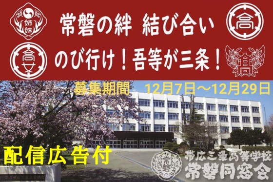 就学継続が困難な学生のために、帯広三条高校常磐同窓会はクラウドファンディングにより皆様のご厚志を募ります。クラウドファンディングの収益は奨学支援金として、経済的...
