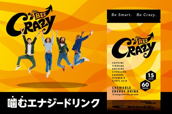 BEECRAZYは「飲む」のではなく「噛む」ことによって成分を摂取する、新感覚のエナジードリンクサプリメントです。たった4粒のタブレットを噛んで食べるだけで、エ...