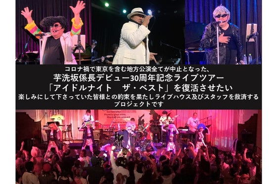 コロナ禍で東京を含む地方公演全てが中止となった、芋洗坂係長のデビュー30周年記念ライブツアー「アイドルナイト ザ・ベスト」を復活させたい。楽しみにして下さってた...