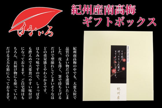 吟味された紀州南高梅を使用したギフトボックスです。その粒は大変大きく箸でつまみ上げると、その重みで崩れそうなほどです。また、皮もやわらかくとてもジューシーです。...