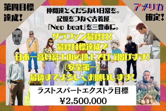 小さな挑戦から大きな挑戦、様々な挑戦が起こり続けている香川県三豊市。そんな地で古着屋『Neo beat』の店舗を開業します!この街に溢れる余白のある日常を過ごす...
