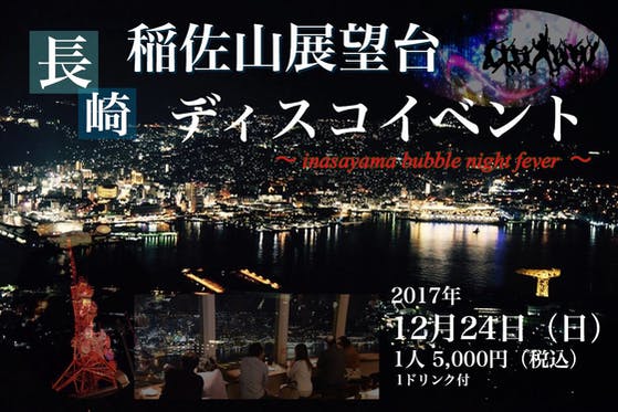 今年のクリスマスイブの夜、稲佐山の展望台がまるごとバブル時代にタイムスリップ!!ゴージャスなディスコイベントを開催いたします!!