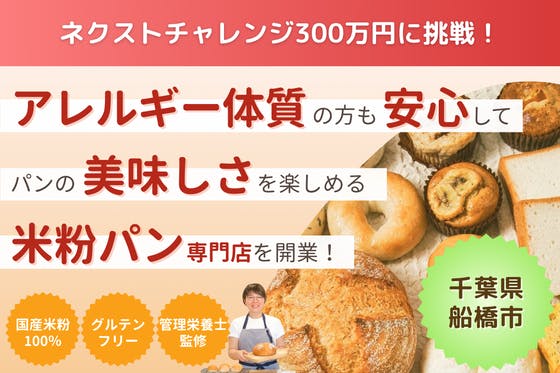 千葉県船橋市に、素材と美味しさにこだわった米粉パン専門店をオープンします。地域の方はもちろん、全国へオンライン販売もおこないます。アレルギーに悩む方にも安心して...