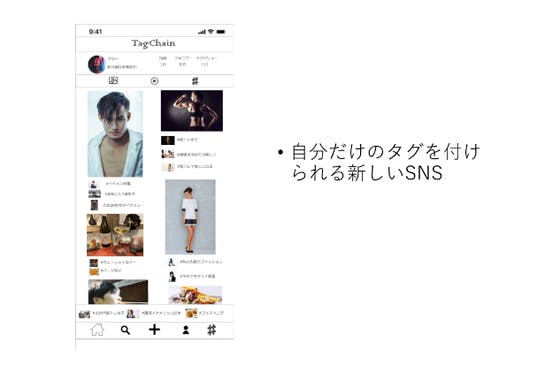 気に入った投稿に自分だけのタグをつけて人と共有ですることによって自分だけの「好き」、他の人だけが持っている「好き」を共有できる新しいSNSです