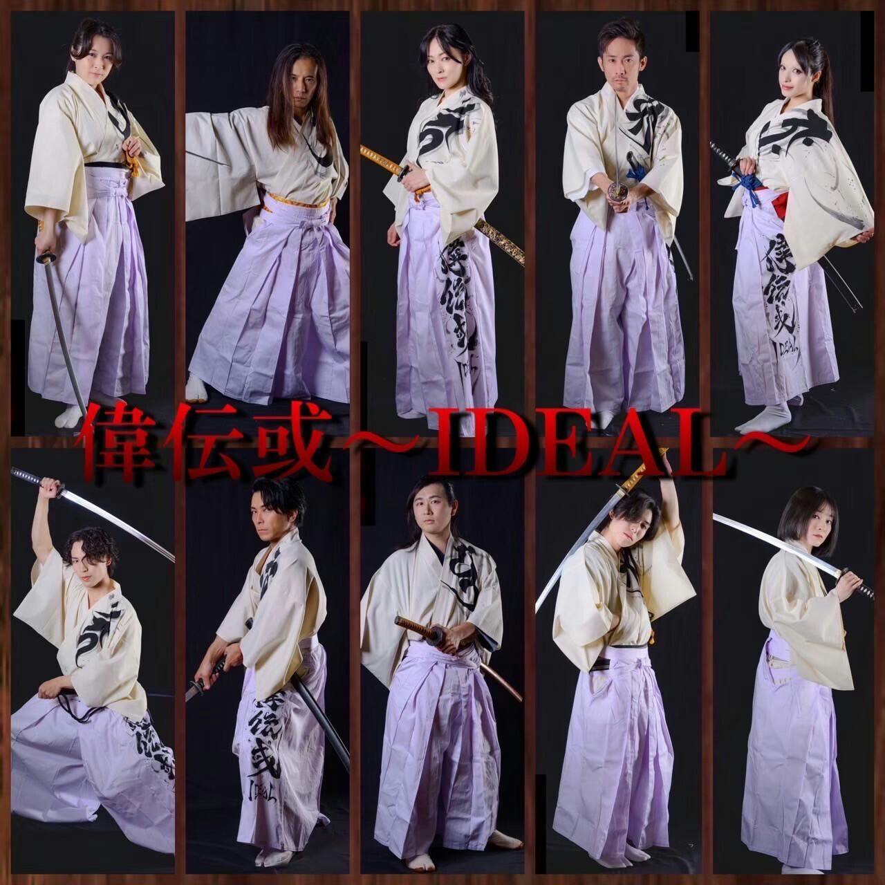 偉伝或~IDEAL~(イデアル)は、日本刀を使った迫力ある殺陣(たて)と、独自に作り上げた剣舞により、伝統的な武士道と和文化の美しさを表現するサムライソードパフォーマンスチームです。 宴席・式典・祭事での演舞、奉納剣舞、主催舞台公演、音楽とのコラボショウ、 そして殺陣指導などを、国内外の様々な場所で執り行っています。