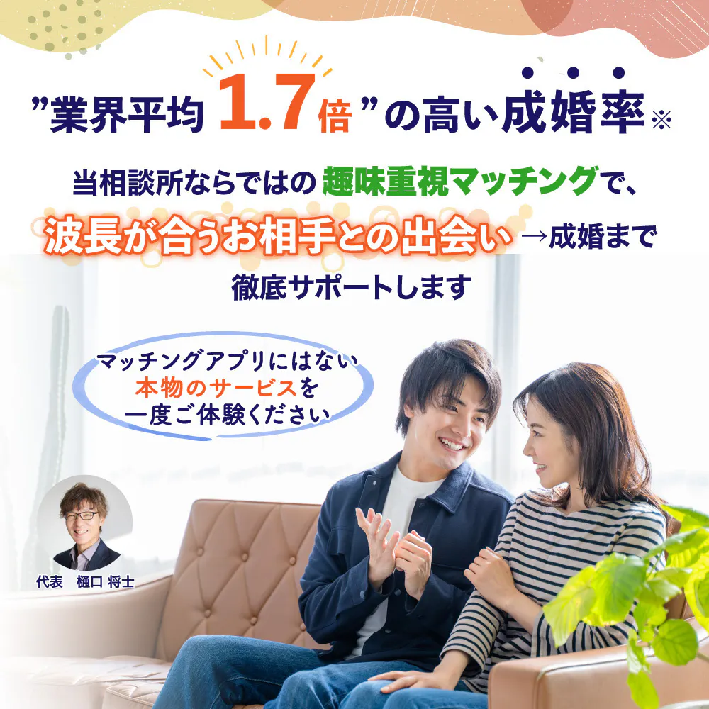 苫小牧市・千歳市近郊で、成婚率業界平均1.7倍のCONNECT-shipが利用できる結婚相談所。さらに色彩心理とロジカル婚活を取り入れ、成婚者を多数輩出の実績。日本仲人連盟より2025年上半期入会賞受賞。