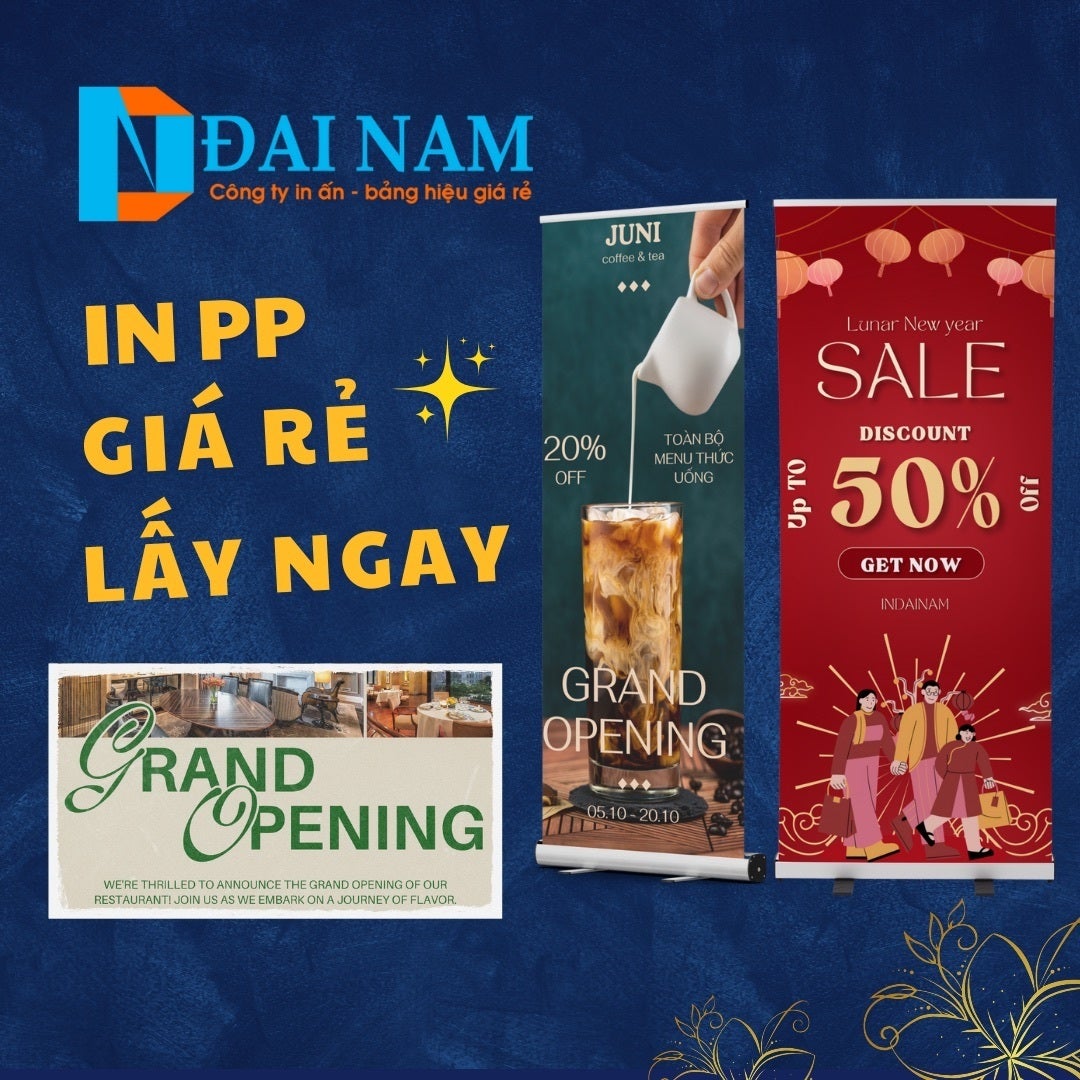 In PP được xem là lựa chọn hàng đầu cho doanh nghiệp, cửa hàng và tổ chức bởi sự sắc nét, đa năng, chi phí hợp lý. Với khả năng in hình ảnh rõ ràng, màu sắc sống động và nhiều ứng dụng linh hoạt, in PP là công cụ truyền thông không thể thiếu trong các chiến dịch marketing hiện đại. Tại IN ĐẠI NAM, chúng tôi cung cấp dịch vụ với chất lượng cao, đa dạng kích thước, gia công hoàn thiện và giao hàng nhanh chóng. ✅ Thích hợp cho quảng cáo trong nhà và ngoài trời ✅ Dành cho cửa hàng, showroom, siêu thị, trung tâm thương mại ✅ Sử dụng trong hội nghị, triển lãm, backdrop sự kiện, standee, poster ✅ Phù hợp cho khuyến mãi, khai trương, roadshow, chiến dịch quảng cáo ngắn hạn THÔNG TIN LIÊN HỆ CÔNG TY IN ĐẠI NAM Văn phòng HCM: 62/20 Trương Công Định, Phường 14, Quận Tân Bình, TP.HCM Văn phòng Hà Nội: Số 5, Ngõ 86/2 Nguyễn Văn Giáp, Nam Từ Liêm, Hà Nội Điện thoại: 0909725123 Website: https://indainam.com/in-pp/ Email: baogia@indainam.com