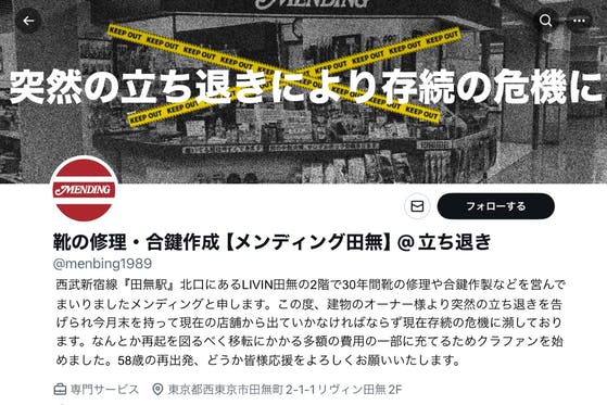 創業30年の靴の修理屋が突然の立ち退きにより存続の危機に!移転再開を目指します!
