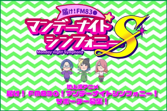 地上波TVアニメ『届け!FM83〇!マンデーナイトシンフォニー!』の続編制作が決定しました!マンデーナイトシンフォニーシリーズを、サポーターになってくださる皆様...