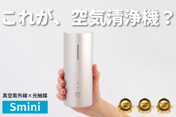 「Smini」とは、新しい機能をコンパクトかつ軽量で実現した、持ち運び自由なネクスト空気清浄機です。新技術のVUVライトで清掃や交換が必要なフィルターを使用せず...