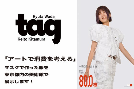 2023年2月下旬東京都内の美術館にて開催される展示に我々tagの、和田竜汰と北村啓人は「アートで消費を考える」というテーマを掲げマスクでできた服を展示しています。