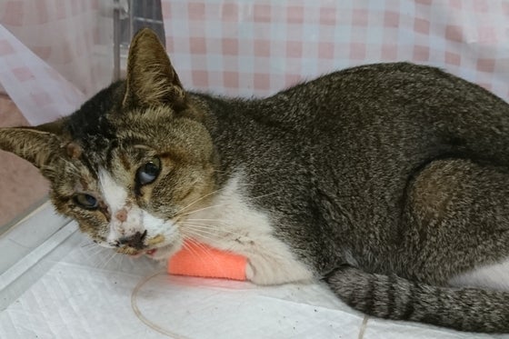 道の真ん中でケガをした野良猫を保護しました。 どうにかこの命を助けたいです。 どうかご支援をお願いします。
