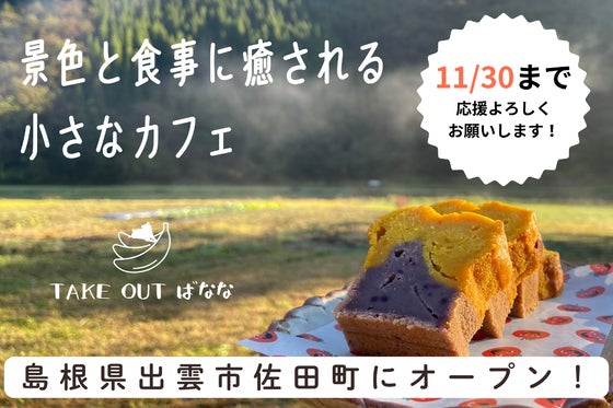 島根県出雲市佐田町で、国産のからだにやさしい素材にこだわったパウンドケーキとコーヒーのお店「TAKE OUTばなな」を営んでいます。移住して2年、小さなお店から...