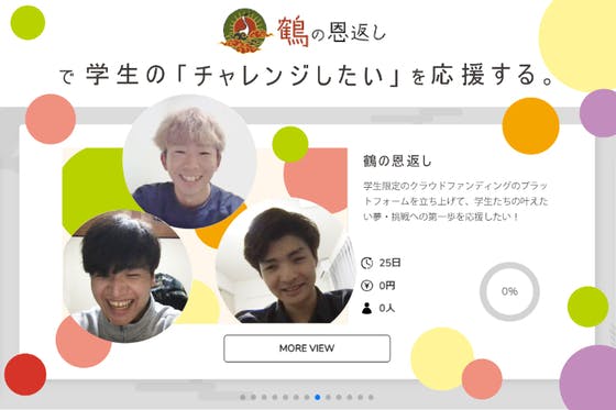 多くの学生が「我慢」の時を過ごすwithコロナの時代。学生がチャレンジするための新たな舞台として、学生向けクラウドファンディングのプラットフォーム『鶴の恩返し』...