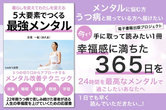 「栄養・睡眠・運動・瞑想・学習」の5大要素で、メンタルを強化!22年間うつ病&15年の引きこもり経験から生まれた電子書籍「5大要素でつくる最強メンタル」を出版し...