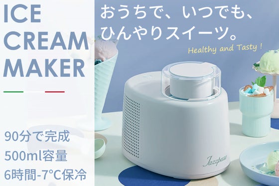 冷凍庫でのアイスボウルの事前冷却不要!ワンタッチ全自動、たった90分間で2人分のアイスクリームが完成する、アイスクリームメーカー「JX600」。