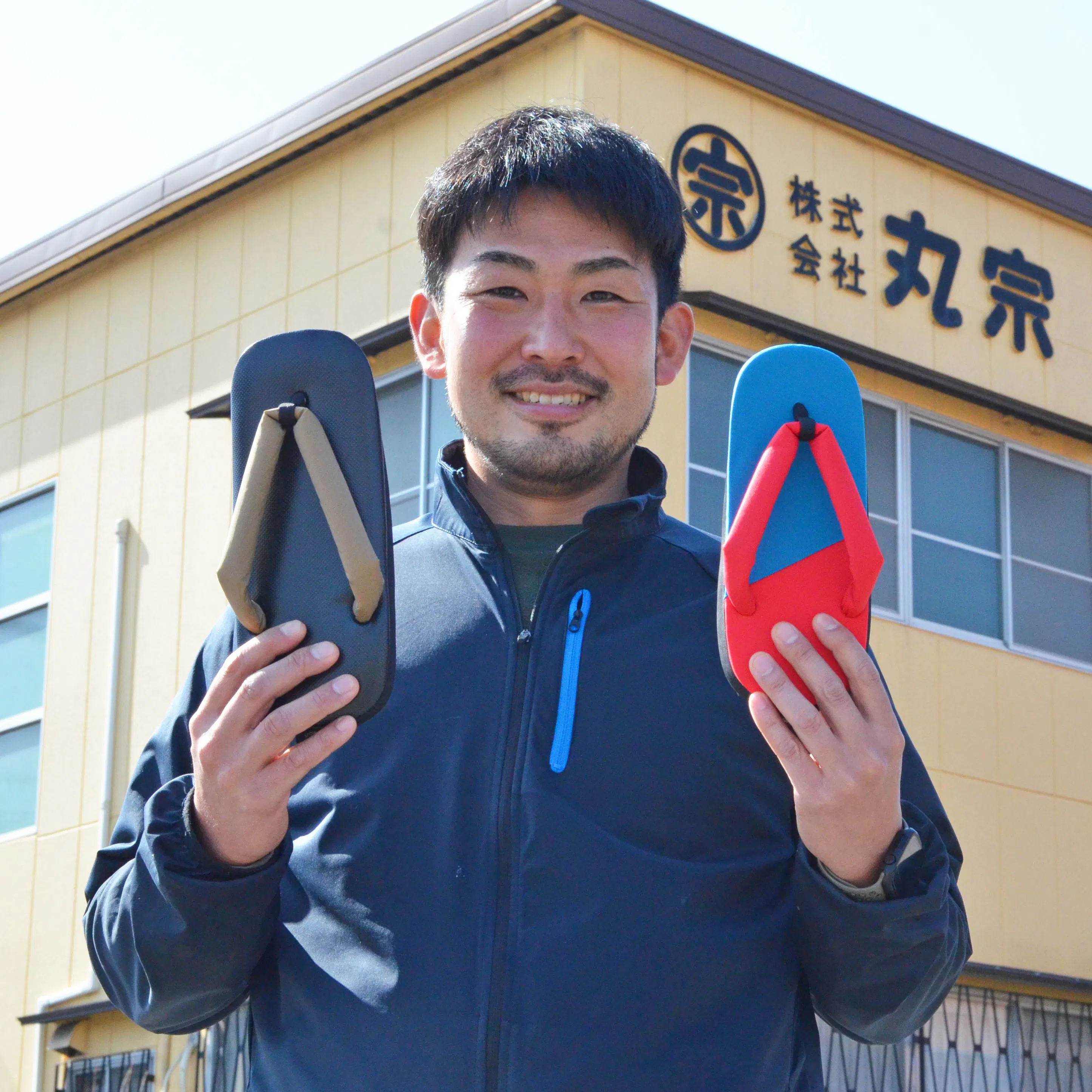 履物卸業を主とする株式会社丸宗3代目、前田真一朗と申します。 大学卒業後、消防士として13年間災害現場などで勤務していました。奥さんの実家を継ぐために、2017年、株式会社丸宗へ入社。現在に至ります。 趣味はランニング(毎朝約10㎞を日課)、ポケモン対戦。 元々、靴やファッションには興味があり、履物を扱うことの抵抗感はなく、入社後、商品の企画開発を主業務とし、中国へ生産管理へ行く等の日常を送っていました。 弊社取扱い商品の中に奈良県の地場産業でもある「雪駄」がありました。 伝統的なデザインから時代に合わせた商品まで数多く取り扱っており、構成する素材によって様々な表情を見せる雪駄は魅力的で、この良さをもっと多くの人に知ってもらえればと思うようになっていました。 しかしながら、現状は消費の減少、生産者の高齢化、後継者不足...雪駄生産は分業化されていて、どこかの工程が止まると生産できない環境下で、奈良の伝統産業の継承が難しい状況が目の当たりにありました。 「それなら、自社で雪駄作ろう!!」 コロナ禍の2020年、補助金を活用しながら、設備を整え、技術を学び、スタッフにも覚えてもらい、2022年から生産を開始できることとなり、今回のプロジェクトへと繋がっています。私たちの歴史は浅くこれからですが、奈良の伝統産業を繋げるという使命をもって、生産に取り組んでいます。 雪駄にはこれからももっと多くの魅力と可能性が秘められていると考えています。 1足1足心を込めて生産しています。大量生産品にはない温かみを感じていただければと思っております。よろしくお願いします。