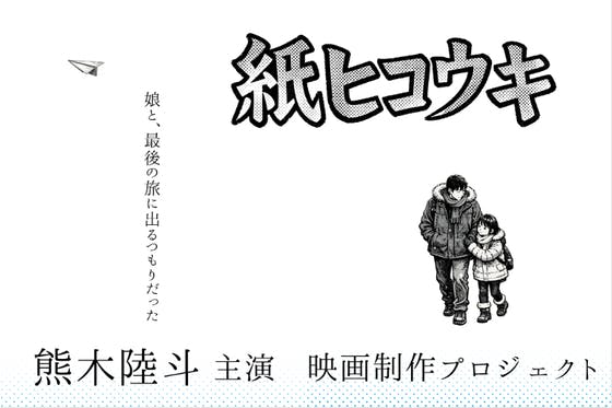 熊木陸斗主演、短編映画『紙ヒコウキ』制作プロジェクト。仕事と居場所を失った父と、紙飛行機が好きな娘の小さな旅を描くヒューマンドラマ。製作資金の一部を募集します。