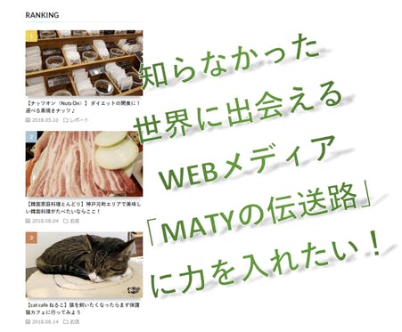 サイト運営はスポンサーを募り、紹介する店舗からは一切取材費を頂かない代わりに、ライターMATYが絶対の自信をもってお届けする「MATYの伝送路」をレベルアップし...
