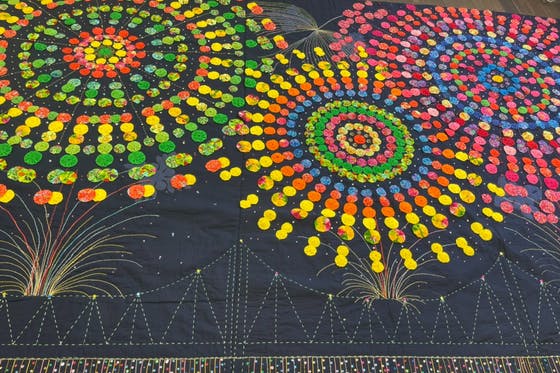 長岡市とホノルル市の姉妹都市10周年記念に作成された「長岡花火キルト」。1万個のキルトをつなげ、長岡花火を表現した作品は、長岡市民や長岡花火ファンに希望や勇気を...