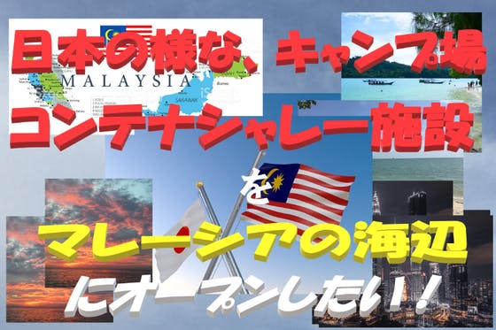 マレーシアのパンコール島近くの浜辺にキャンプ場とコンテナシャレーを併設した施設を作り、日本や世界から此処へ来て頂ける憩いの場を作りたいと考えています。また、地域...