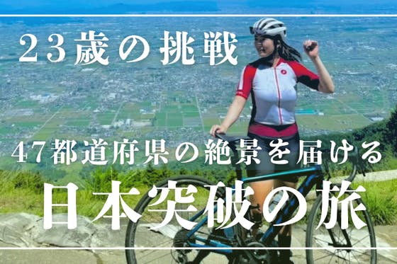 「23歳の若さと体力を武器に、ロードバイクで日本全47都道府県を走破すること」 単に走るだけでなく、各地の美しい景色や食、人々との出会いをSNSでリアルタイム...