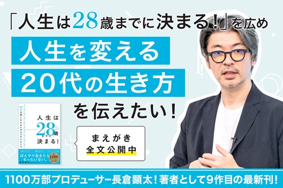 新刊『人生は28歳までに決まる!』を広め、人生を変える20代の生き方を伝えたい!8年近く20代のコミュニティを運営し、2000人以上の若者と直接関わってきた長倉...