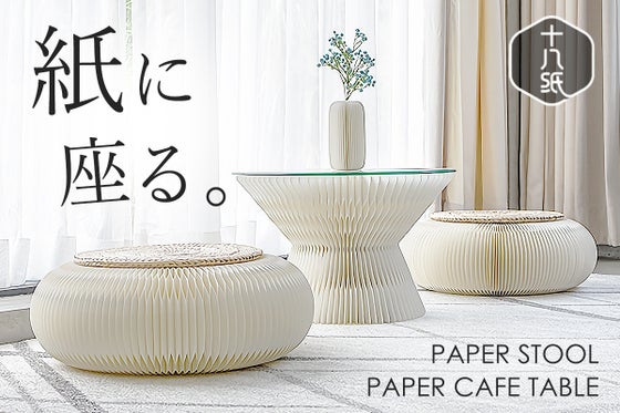 ハニカム構造と丈夫なクラフト紙で繊細な紙に強度を持たせ、”座れる紙”を実現した、ペーパースツール/カフェテーブル「十八紙(とわがみ)」