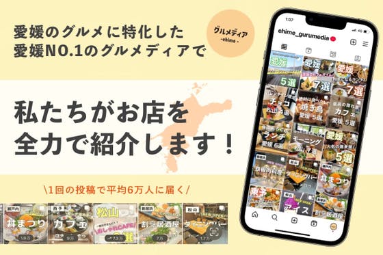大好きな地元『愛媛県』の魅力溢れる店舗様を、私たち[愛媛グルメディア]が全力でPR・サポートいたします!月間約80万人が訪れるグルメディアのInstagramを...