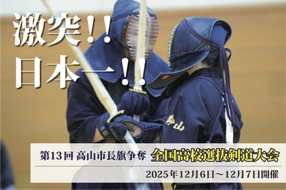 剣道日本一の高校剣士よ来たれ!12月6日・7日に高山市ビックアリーナにて開催予定の高山市長旗全国高校選抜剣道大会を応援しよう