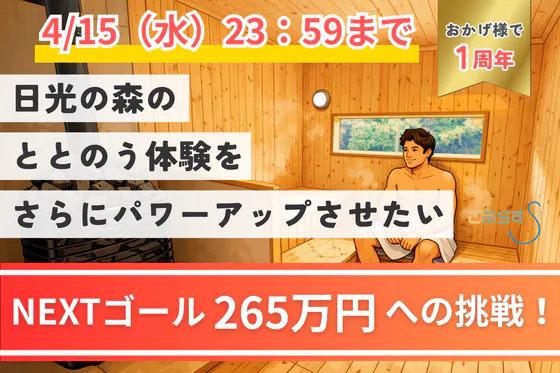 人々が日常にサウナを取り入れ、心身共に健康になれる場所をつくりたい。そんな思いからサウナ専門店「mui(無為)」のオープンを目指します。日常的に楽しめる価格帯で...