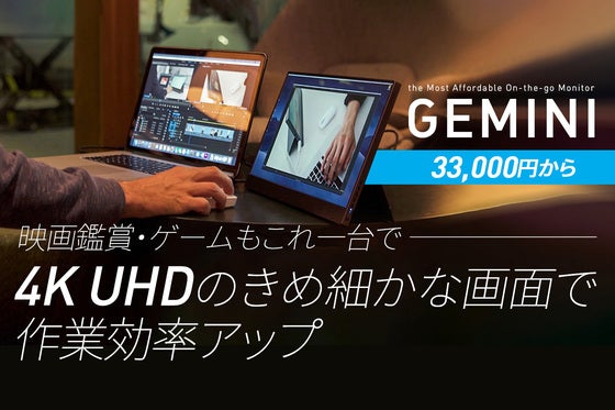 15.6インチのFHDタッチスクリーン、または4K UHDスクリーン|バッテリー内蔵|キックスタンド付き。ジェミニは、お使いのディスプレイの能力を更に拡大させ、...
