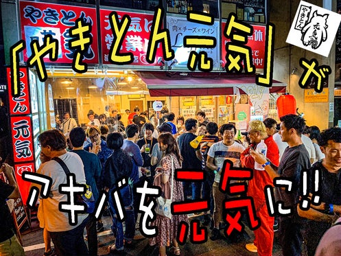 様々なカルチャーが共存している秋葉原で10周年を迎える世界一自由な居酒屋『やきとん元気』みんなを元気にするため奮闘中Tシャツを着て元気と希望を示します!!