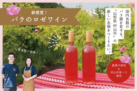 “バラのまち”山形県村山市産のバラと山形産のブドウをふんだんに使った「バラのロゼワイン」をつくります。村山市で蕎麦屋を営むファミリーによる挑戦です。 地元の豊か...