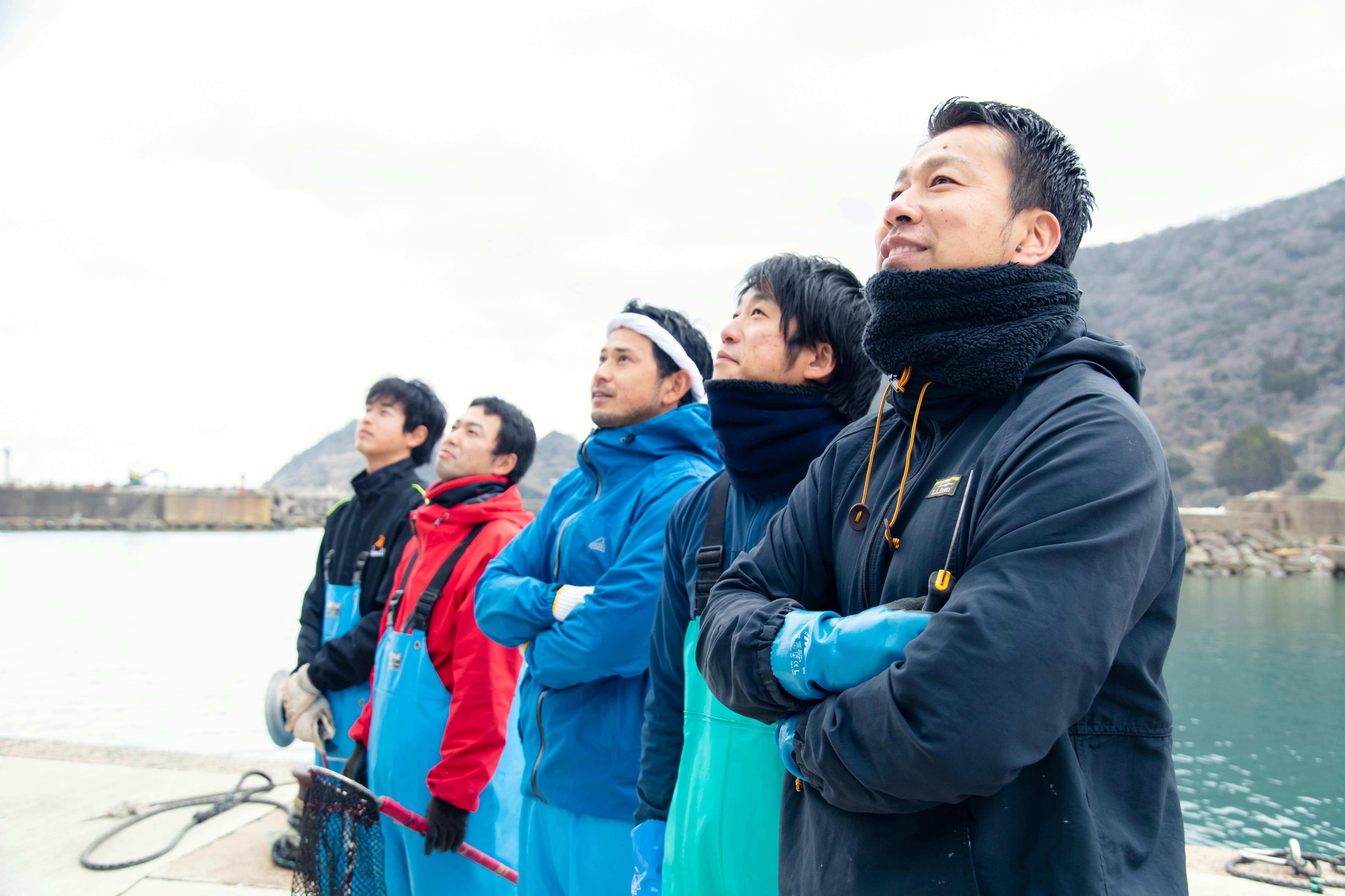 代表取締役 小笹伸一朗 元保育士という異例の経歴を持つ。 出会った若者を次々と漁師へスカウトする。 定置網では漁労長を務めており、船長とは義兄弟。 取締役船長 中村貴人 漁師の前歴は警備員。 現在は海の警備員として定置網の船長を務める。 お刺身が苦手。代表とは義兄弟。 取締役営業本部長 尾島徹哉 チームのムードメーカー的存在。 元シジミ調査員。 好物はビールと刺身の炙り。 行きつけの居酒屋で代表にスカウトされる。 藤原成樹 介護職や内装の仕事を経て漁師へ。 赤い服を好む。 介護職時代に代表と出会う。 主に製造部門で活躍中。 持田将貴 M.F.F.最年少。癒し担当。 自動車部品工場に勤めていたが、代表にスカウトされて漁師の世界へ。 主に製品管理部門担当。