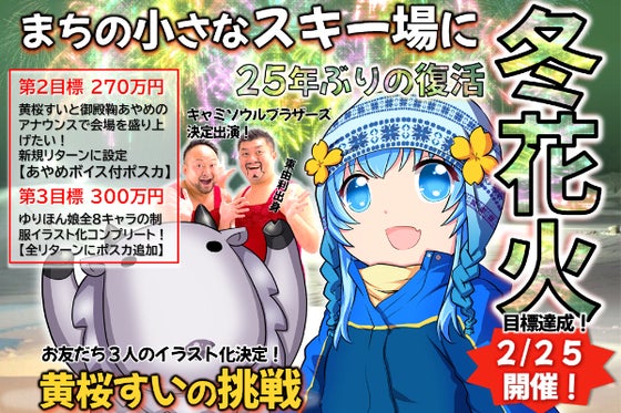 2023年2月存続の危機にあった秋田県の小さなスキー場ではじめて冬花火を打ち上げました。もう一度、ひがしゆりの冬空に花火を打ち上げて笑みの花を咲かせたい!ご当地...