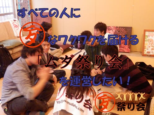 「ムダこそが、楽しいんじゃないか」。最高に下らないムダなイベントを提供していく団体「ムダ祭り会」を運営していくためのプロジェクトです。