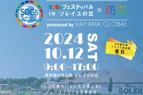 2024年10月12日、横須賀のソレイユの丘で「SDGs × 防災フェスティバル」を開催いたします。今までの防災イベントとは異なり、SDGsと防災、環境問題を結...