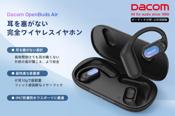 IP67防塵防水で片耳10gと超軽量で耳に負担にならない、最大24時間使用可能な耳を塞がない完全ワイヤレス。Bluetooth5.3、外部音取り込みに加え、運動...