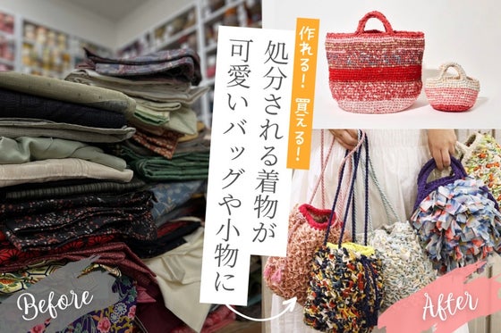 処分される着物をアップサイクルしたヤーン(糸)=キモノヤーン。キモノヤーンを通して、日本の伝統文化である着物の新しい魅力、楽しみ方を伝えます。裂き編み作家・河村...