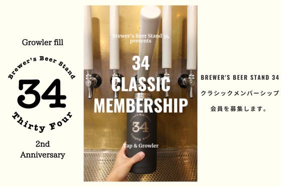 グラウラー(Growler)によるクラフトビールの量り売り販売の開始と、2020年7月28日に迎えましたオープン2周年を記念し、この度「34クラシックメンバーシ...