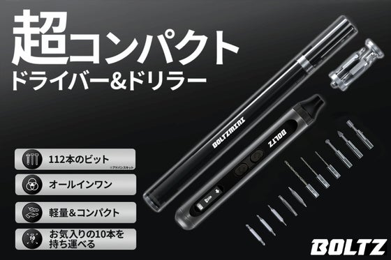 ペン型収納ケースにドライバー本体と10本のビットを収め、持ち運びも簡単!さらに、アドバンスセットなら112本のスクリュービットに加え、ドリルやサンディングビット...