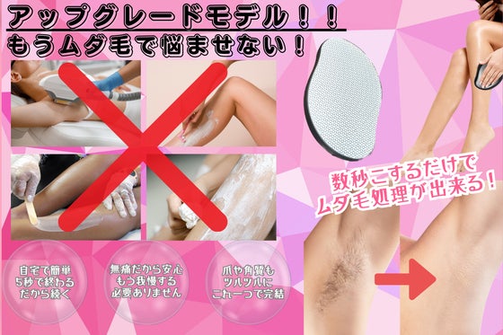 ①アップグレードされた製品 ②ムダ毛を物理除毛(ナノマイクロガラス) ③ 爪のツヤ出しネイルケアも可 ④ 男性の剛毛にも◎しっかり対応 ⑤角質除去で美肌効果