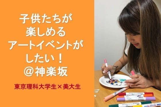 私たちは東京理科大学の経営学部の学生です。神楽坂では毎年の11月に「神楽坂まち飛びフェスタ」というイベントが開かれております。伝統と芸術がテーマのこのイベントにて私たちは子供たちに楽しんでもらう「食器にお絵かき」という企画を考えました。