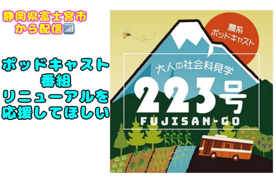 静岡県富士宮市発 ポッドキャスト番組「農道223号」をリニューアルします。それに伴う費用を応援していただきたいと思います。農と食を中心に、様々なゲストをお招きし...