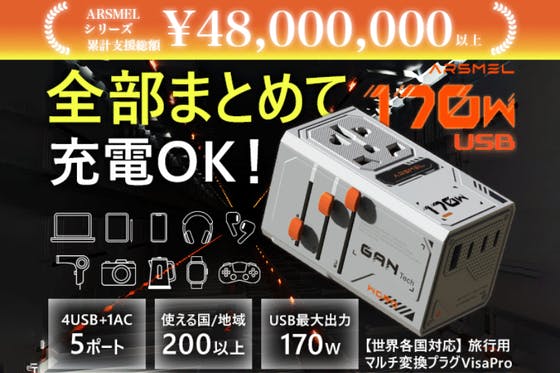 世界旅行にこれひとつ!USB160W+AC2500W超高出力/5台同時充電可能なオールインワンタイプ!全世界で200以上の国や地域に対応。