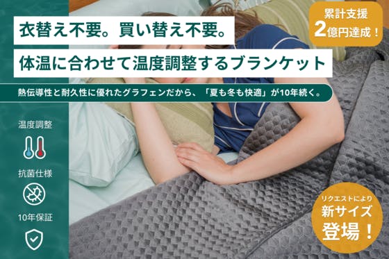 世界初のグラフェン100%素材を利用したスリープブランケット「HILU」がCAMPFIREに再登場しました!第一回目のフィードバックに基づき、日本の暮らしに合っ...