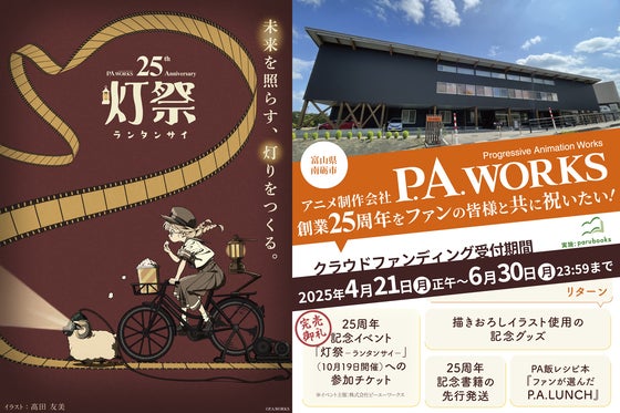創業25周年を迎える、富山県南砺市のアニメーション制作会社・P.A.WORKSが創業の地で開催するイベント「灯祭-ランタンサイ-」を多くのファンの皆様と共にお祝...
